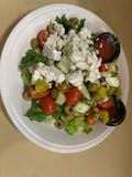 Tomatoes, cucumbers, onions, olives, and feta cheese in an olive oil dressing. Supersized for your party.