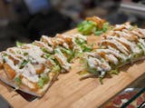 Fresh romaine lettuce & sliced chicken cutlet topped with our own creamy Caesar dressing.