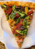 Topped with plum tomatoes, Vegan cheese, sautéed mushrooms and peppers