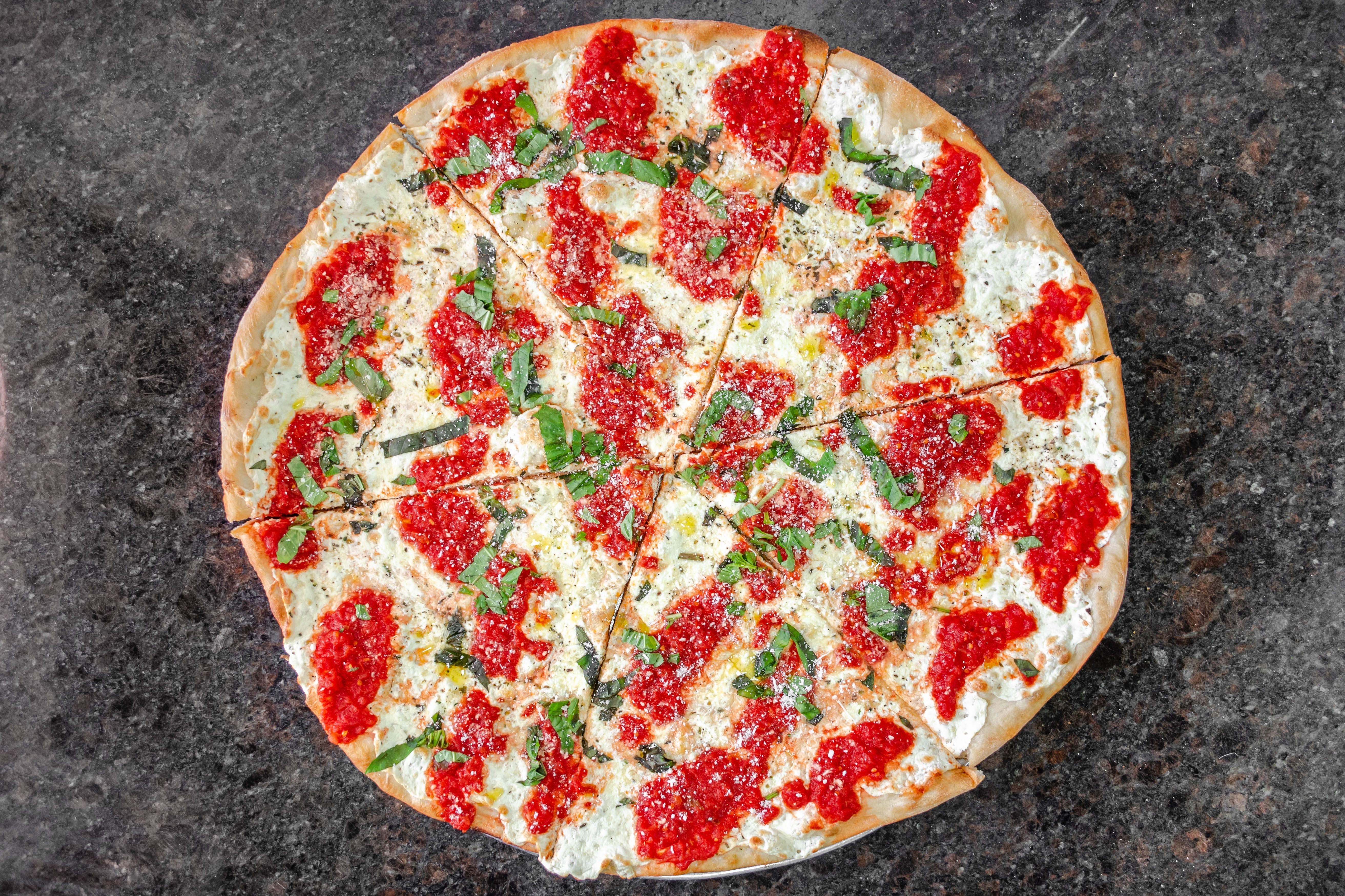 Fresh mozzarella, ricotta cheese & garlic, basil and a touch of romano cheese.