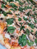 Spinach, Mushroom, freshly roasted garlic, mozzarella and Pop's special red sauce on house made dough. 18in pie (feeds 3-4)