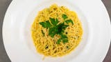 Extra virgin olive oil, red pepper, garlic & Parmigiano Reggiano.