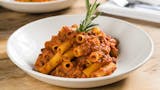 Homemade tomato sauce with bacon a splash of vodka, & cream.