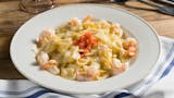 Bow tie pasta, baby shrimp, cream & lemon zest.