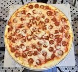 Saba's classic thin crust New York City pizza topped with pepperoni.