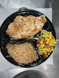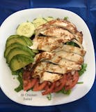 Caesar salad topped with seasoned chicken, available in 1/2 or full tray sizes.