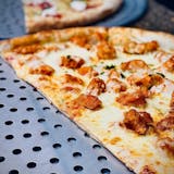 Sicilian pie featuring freshly breaded chicken cutlets with Stinging Honey Garlic sauce.