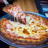 Tomato, spinach & feta cheese mix on a round pita topped with mozzarella, oregano & grated cheese.