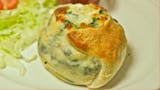 Sautéed seasoned vegetables with garlic & oil in a creamy sauce.