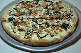 Herbed Ricotta sauce, fresh tomatoes, marinated spinach topped with smoked bacon and mozzarella cheese.