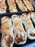 Sausage, broccoli rabe, cherry peppers, and mozzarella. Rolled with pizza dough & fried.