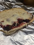 Steak, banana peppers, & mozzarella cheese on a country sweet sauce.