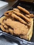 Sauteed onion and peppers with crispy chicken, wing sauce and cheddar cheese.