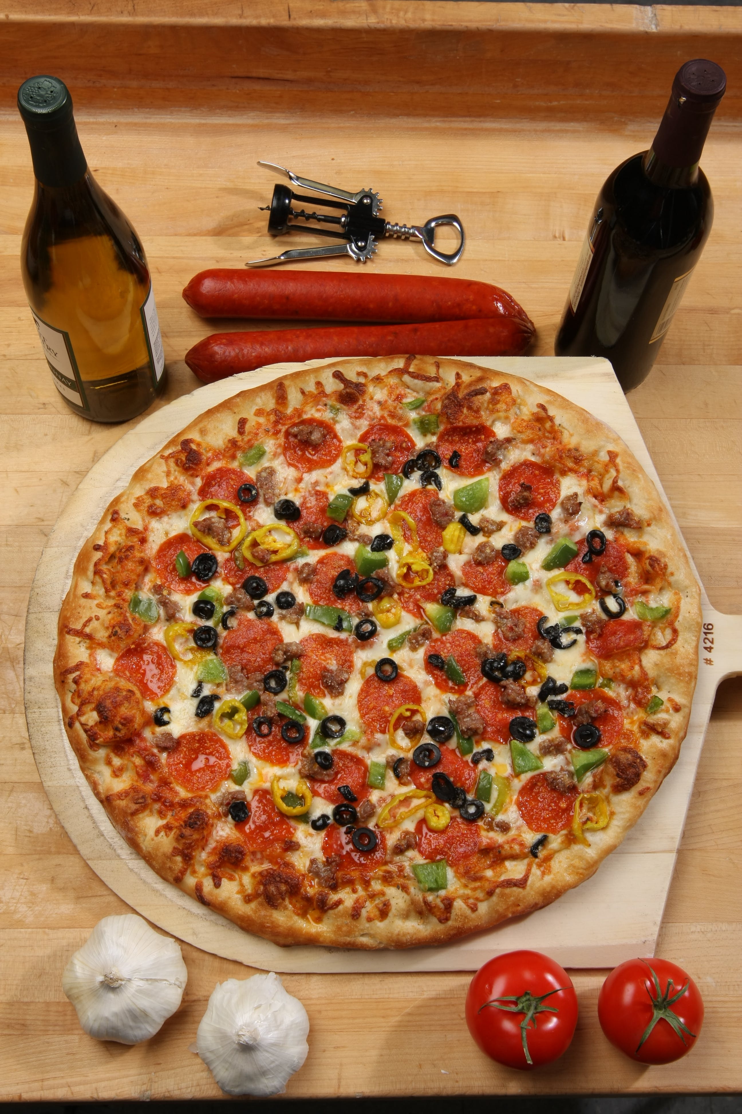 16" pizza & 10 chicken wings.