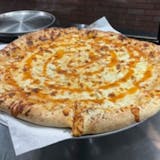 Oven Roasted Chicken Breast, Fresh Dough, Our Homemade Buffalo Sauce and Mozzarella Cheese.