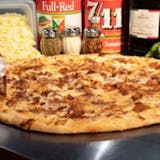 Fresh Dough, Tomato Sauce, Pepperoni, Italian Sausage, Meatballs & Mozzarella Cheese