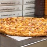 Double Layer of Fresh Dough, Oven Roasted Chicken, with our Buffalo Sauce, Pulled Pork with our Home-Made BBQ Sauce, Bacon, Mozzarella & Pecorino Romano Cheese