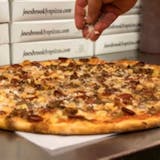 A Perfect Pizza just for you! A “Crisp” crust, yet soft in the middle and is meant to be enjoyed by folding in half. Listen for that “Crunch” as you fold your Joe’s Brooklyn Thin Crust Pizza!