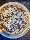 Diced chicken breast lightly dusted with flour and oven-baked, tossed in our famous BBQ sauce and smothered with mozzarella cheese and baked to a golden brown crispy crust.