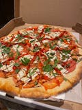 Seasoned grilled eggplant over marinara crust, topped with fresh tomatoes.