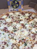 Mozzarella, provolone, gorgonzola & ricotta cheese over white crust.