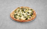 Made with tomato sauce, sautéed spinach, fresh broccoli, sautéed green peppers, fresh mushrooms, sliced black olives, sautéed onions & mozzarella.