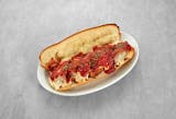 Made with sauce on the bottom. Topped with chopped iceberg lettuce, tomatoes, onions and our homemade house Italian dressing (no cheese).