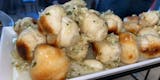 Clams, mussels, calamari, and shrimp in a white wine garlic sauce.