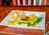 2 hand-breaded chicken culets folded and filled with: 1 bruschetta, fresh mozzarella and balsamic glaze & 1 penne vodka and grated cheese.