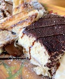Ladyfingers and mascarpone cream, topped with Toasted almonds and amaretto cookie crumbs.