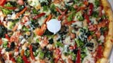 Sauteed mushroom, fresh broccoli, spinach, roasted peppers, fresh tomatoes and fresh roasted garlic topped with a blend of mozzarella cheese.