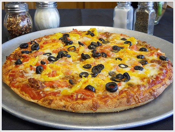 Hot peppers, onions, capicola and pepperoni with a red sauce.
