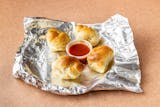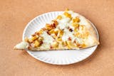A sauceless pie topped with ricotta, mozzarella, and parmesan cheese.