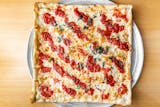 Thin Sicilian crust brushed with olive oil & garlic, fresh mozzarella, and spotted with chunky San Marzano tomato sauce.