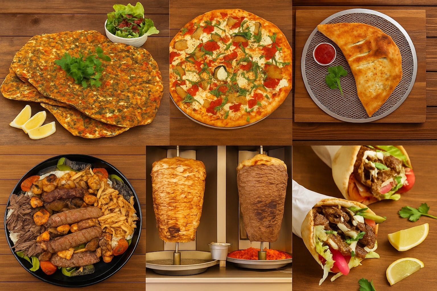 Thinly sliced beef marinated in special spices and sauce, cooked on a vertical rotisserie. Served with fresh salad, white rice, and sauces, all provided separately.