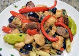 Sausage, sliced cherry peppers and fresh mozzarella.