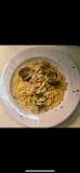 Fusilli pasta, cheddar cheese and burnt bread crumbs.