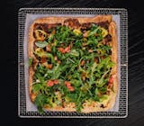 Arugula, red onions, fresh mozzarella, basil pesto, and crispy prosciutto. Served with our traditional aged balsamic on the side.