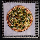 Basil pesto, goat cheese, artichokes, spinach, asparagus, tomato.