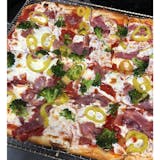 Red pepper sauce, mozzarella, sausage, meatball, crispy prosciutto, cherry pepper.