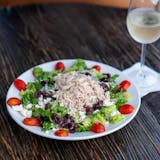 Romaine mix, chicken, feta, kalamata olives, sundried tomatoes, & red onions. Served with our signature Greek dressing.