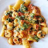 With grilled chicken, broccoli rabe, garlic, and oil sauce.