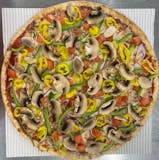 Looking for a delicious and healthy pizza option? Try our garden veggie pizza loaded with red onion, green peppers, banana peppers, diced roma tomatoes, and fresh sliced mushrooms - a burst of flavor in every bite! Satisfy your pizza cravings guilt-free with our nutritious and tasty veggie-packed option. Treat yourself to a garden-fresh experience with every slice of our garden veggie pizza - because who says healthy can't be delicious?