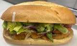 Craving a flavorful and satisfying sandwich experience? Indulge in our 8" sicilian sub, packed with capicola hot ham, salami, ezzo pepperoni, and provolone on homemade focaccia bread, and topped with red onion, banana pepper, roma tomato, lettuce, and creamy red wine vinaigrette! Treat yourself to a mouthwatering taste of italy with every bite - it's a sandwich lover's dream come true! It don't miss out on this delicious fusion of flavors.