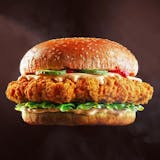 Chicken patty, spicy mayo, lettuce, tomato, onion, provolone cheese slices.