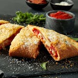 Filled with heritage pepperoni and smoked Provolone cheese, and topped with Asiago, Romano. Served with a marinara sauce for dipping.