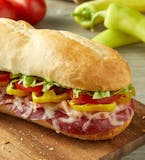 Shaved ham, sliced salami, smoked Provolone, banana peppers, freshly cut Roma tomatoes, lettuce, and marinara sauce.