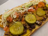 Grilled steak with grilled onions, mushrooms & cheese topped with lettuce, tomatoes & mayonnaise.