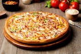 Chicken, bacon, onions, cheddar cheese, mozzarella & bbq sauce.