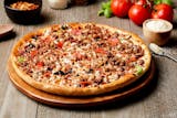 Italian sausage, pepperoni, beef, canadian bacon, sausage, onions, green peppers, mushrooms, black olives & bacon.